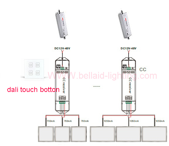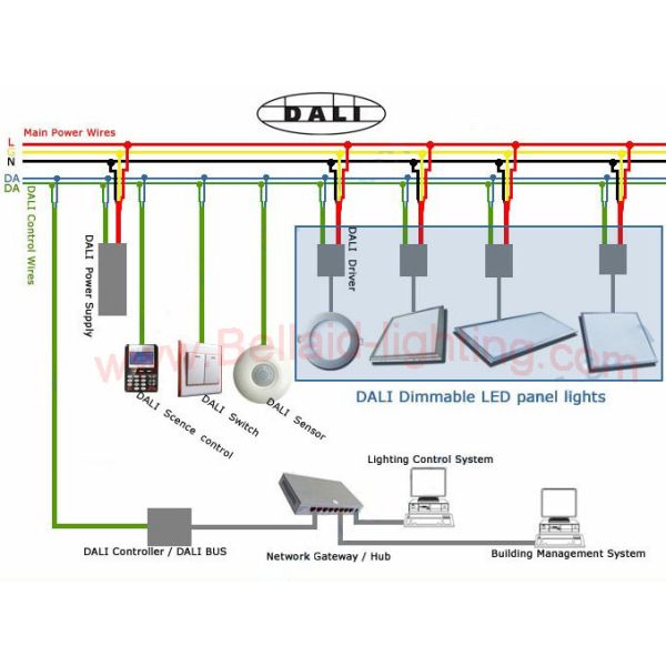 Dali dim simple wire diagram, each Dali constant driver to power one lamp.